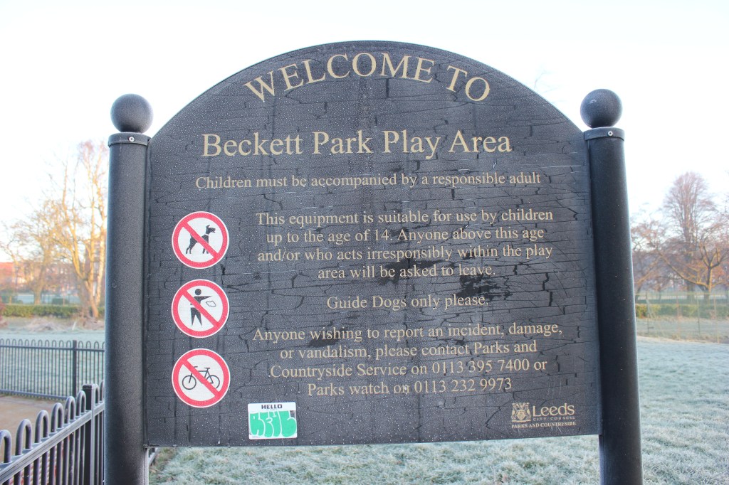 Birkenshaw, C. (2024) Beckett Park: Welcome Sign [Photograph]. Leeds. ©Claire Birkenshaw.